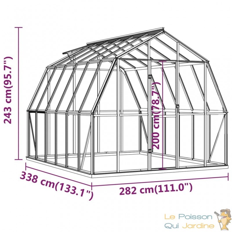 La construction de cette serre repose sur des panneaux robustes en polycarbonate, réputés pour leur résistance aux rayons UV et leur isolation thermique performante. Pour garantir une solidité exceptionnelle, la structure est en aluminium, et le cadre de base est renforcé par quatre profils solides, assurant une grande stabilité. Elle est également dotée d'un système de gouttière qui évacue efficacement l'eau de pluie et d'un évent de toit qui favorise une ventilation optimale par temps chaud. Les panneaux du toit sont sécurisés par des clips métalliques, garantissant ainsi une durabilité à long terme. L'assemblage de cette serre est également un processus simple, facilitant son installation.
