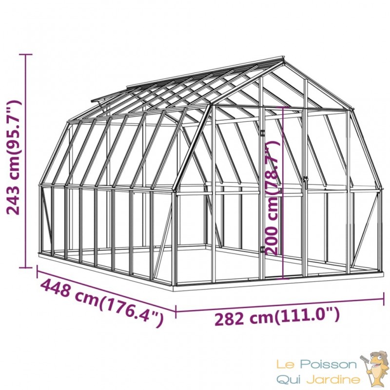 La construction de cette serre repose sur des panneaux robustes en polycarbonate, réputés pour leur résistance aux rayons UV et leur isolation thermique performante. Pour garantir une solidité exceptionnelle, la structure est en aluminium, et le cadre de base est renforcé par quatre profils solides, assurant une grande stabilité. Elle est également dotée d'un système de gouttière qui évacue efficacement l'eau de pluie et d'un évent de toit qui favorise une ventilation optimale par temps chaud. Les panneaux du toit sont sécurisés par des clips métalliques, garantissant ainsi une durabilité à long terme. L'assemblage de cette serre est également un processus simple, facilitant son installation.