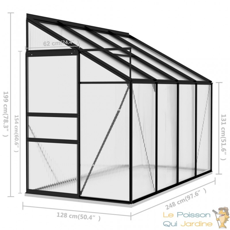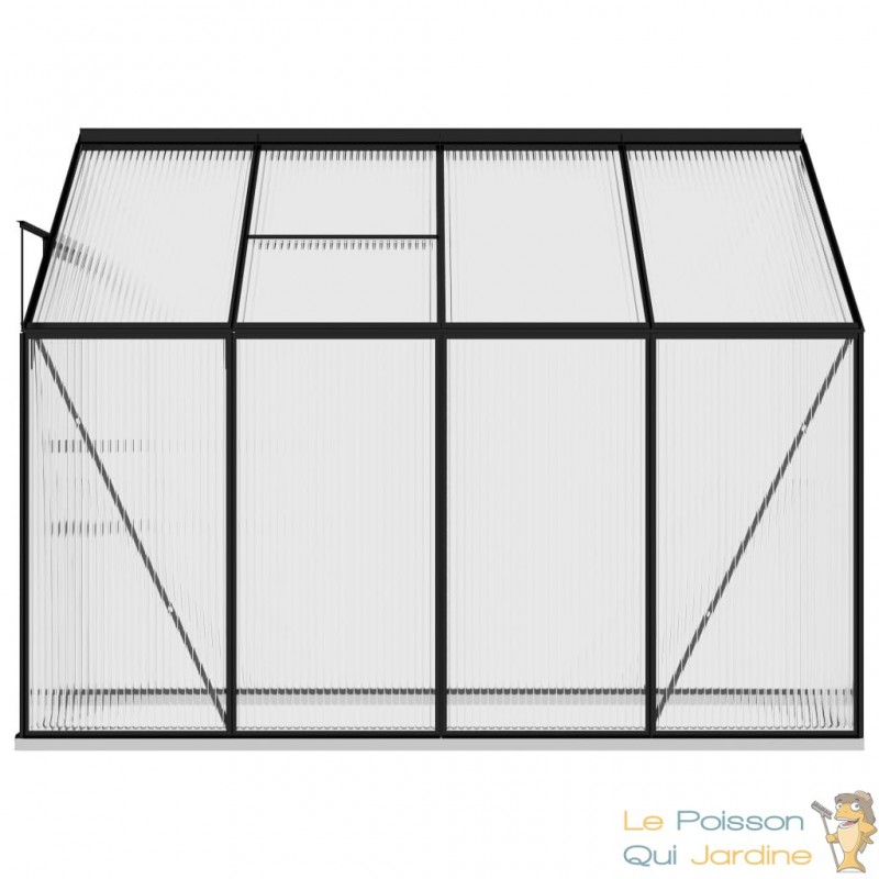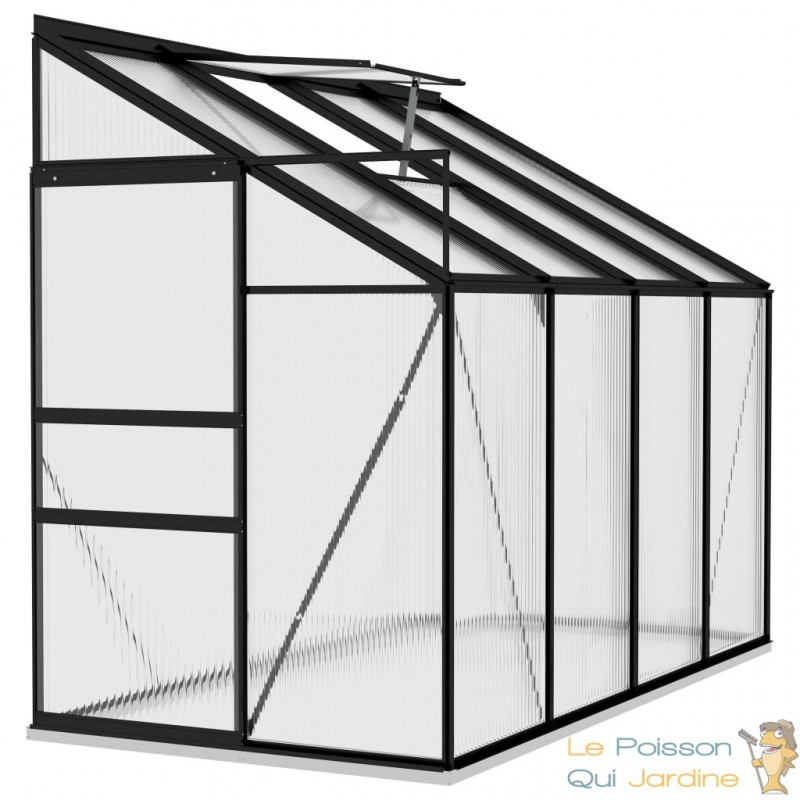 Les profilés en aluminium anodisés viennent compléter cette structure, offrant une stabilité supplémentaire tout en résistant à la corrosion et à l'usure. Cette combinaison de matériaux de haute qualité garantit une serre solide et durable, capable de faire face aux rigueurs de l'environnement extérieur tout en conservant son esthétique élégante au fil du temps.
