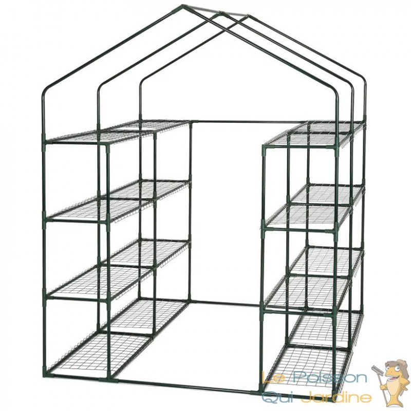 L'intérieur de la serre est équipé de deux étagères amovibles, chacune comprenant deux surfaces de rangement, offrant ainsi une grande capacité de stockage pour vos plantes.