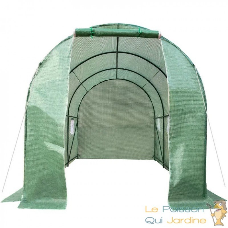 La bâche de la serre est conçue pour laisser passer la lumière du jour tout en maintenant un environnement intérieur optimal en termes d'humidité et de chaleur. De plus, lors des journées particulièrement chaudes, vous avez la possibilité d'ouvrir la porte à l'aide d'une fermeture éclair et de l'enrouler, favorisant ainsi une circulation d'air adéquate.