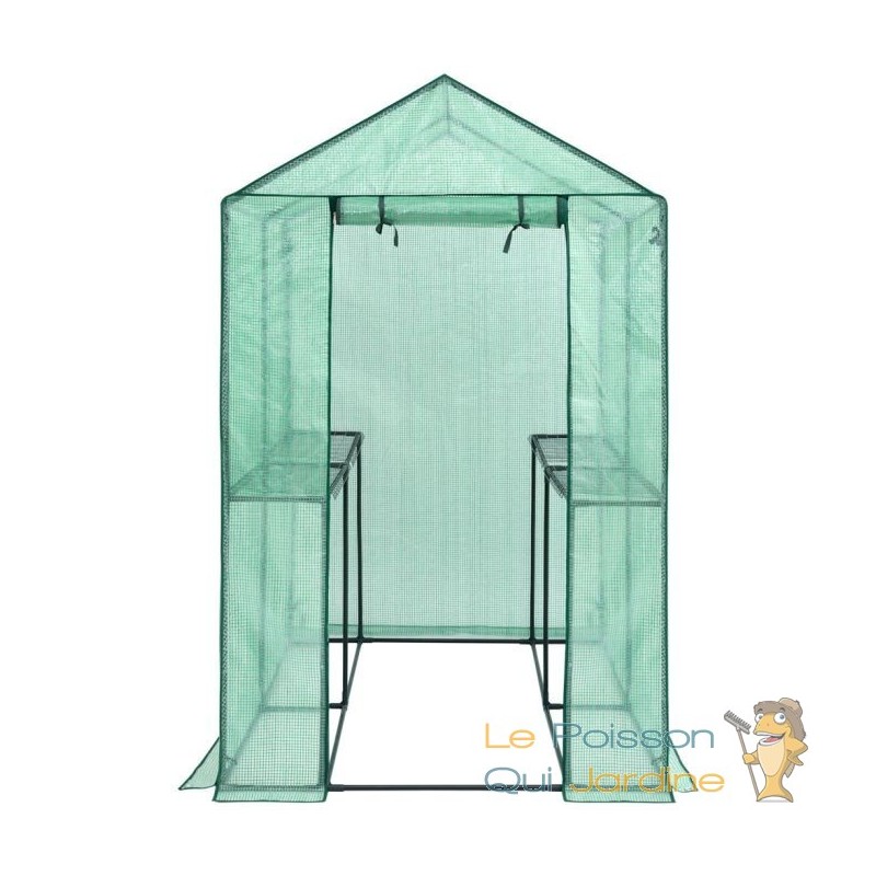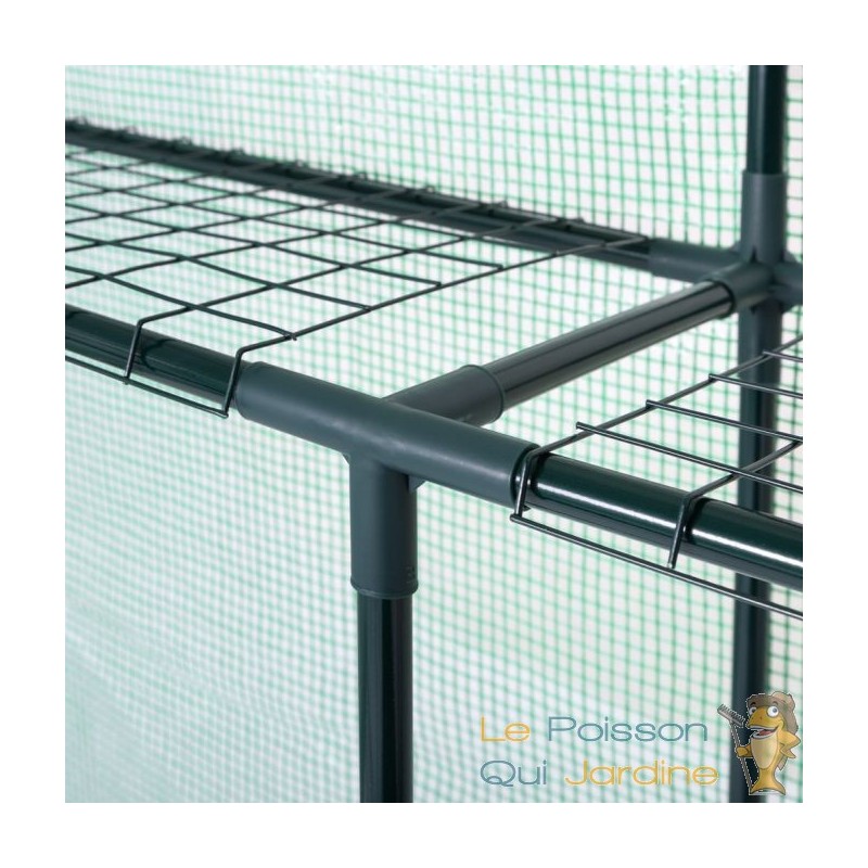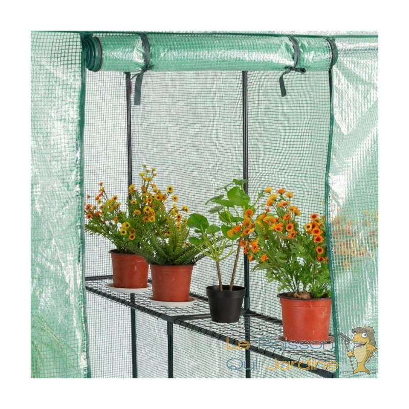 La bâche de la serre est conçue pour laisser passer la lumière du jour tout en maintenant un environnement intérieur optimal en termes d'humidité et de chaleur. De plus, lors des journées particulièrement chaudes, vous avez la possibilité d'ouvrir la porte à l'aide d'une fermeture éclair et de l'enrouler, favorisant ainsi une circulation d'air adéquate.
