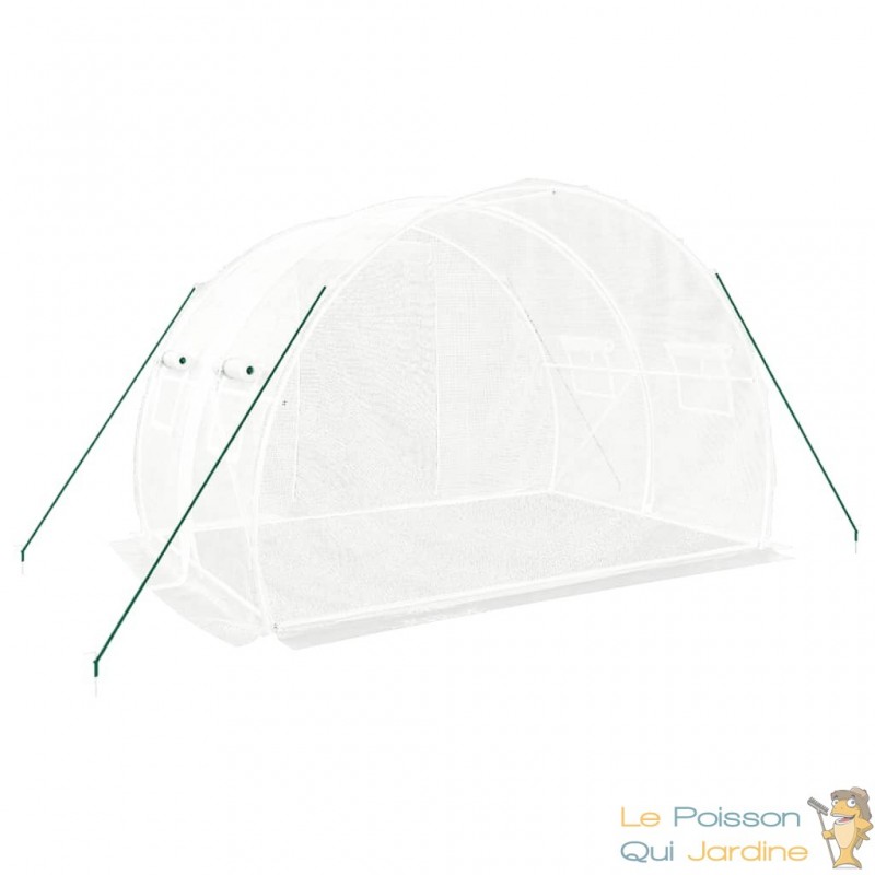 La bâche de la serre est spécialement conçue pour laisser passer la lumière du jour tout en maintenant un environnement intérieur optimal en termes d'humidité et de chaleur. De plus, lors des journées particulièrement chaudes, vous avez la possibilité d'ouvrir la porte à l'aide d'une fermeture éclair et de l'enrouler, favorisant ainsi une circulation d'air adéquate.