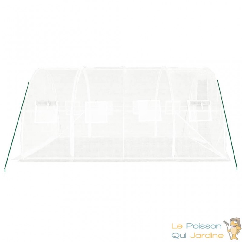 Il est important de noter que la bâche de la serre est légèrement plus longue que le cadre, donc il est recommandé de stabiliser le bord avec de la terre ou des pierres pour assurer une stabilité globale optimale. De plus, des cordes et des piquets sont inclus dans la livraison pour garantir une fixation sécurisée de la serre.