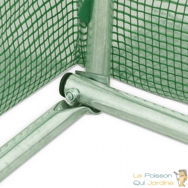 La bâche de la serre est spécialement conçue pour laisser passer la lumière du jour tout en maintenant un environnement intérieur optimal en termes d'humidité et de chaleur. De plus, lors des journées particulièrement chaudes, vous avez la possibilité d'ouvrir la porte à l'aide d'une fermeture éclair et de l'enrouler, favorisant ainsi une circulation d'air adéquate.