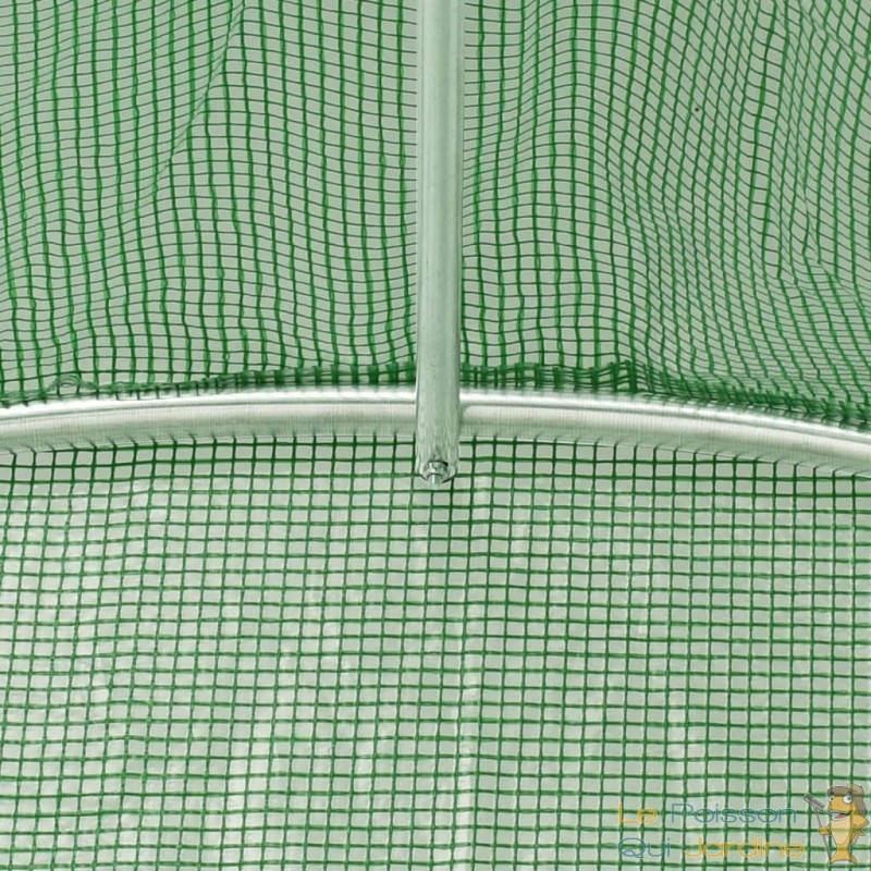 Design pratique : La serre est conçue pour faciliter l'accès et optimiser la circulation d'air grâce à sa porte à enroulement avec fermeture éclair et ses fenêtres latérales en treillis à enroulement.