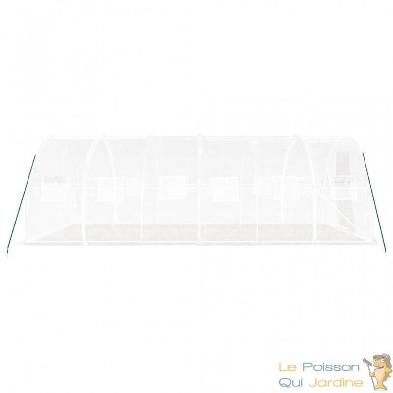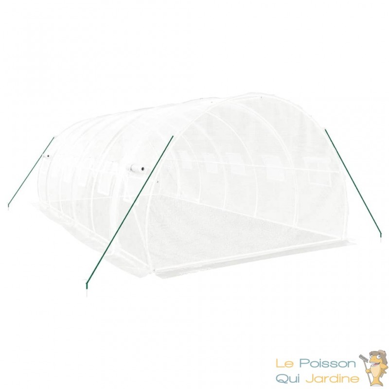 Il est important de noter que la bâche de la serre est légèrement plus longue que le cadre, donc il est recommandé de stabiliser le bord avec de la terre ou des pierres pour assurer une stabilité globale optimale. De plus, des cordes et des piquets sont inclus dans la livraison pour garantir une fixation sécurisée de la serre.