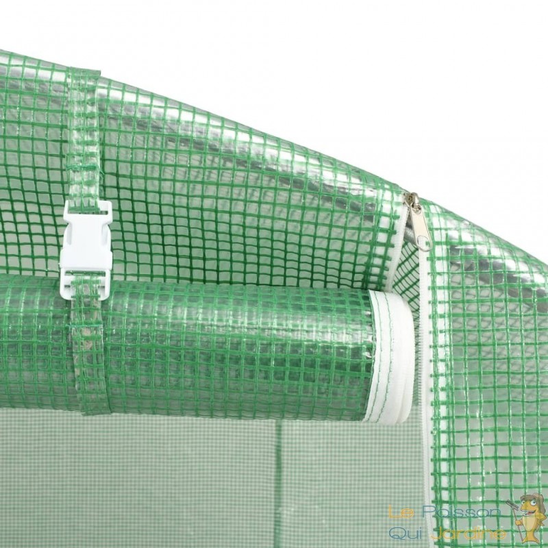 La bâche de la serre est spécialement conçue pour laisser passer la lumière du jour tout en maintenant un environnement intérieur optimal en termes d'humidité et de chaleur. De plus, lors des journées particulièrement chaudes, vous avez la possibilité d'ouvrir la porte à l'aide d'une fermeture éclair et de l'enrouler, favorisant ainsi une circulation d'air adéquate.