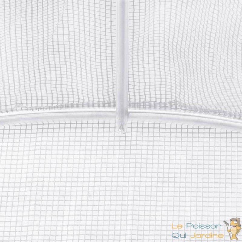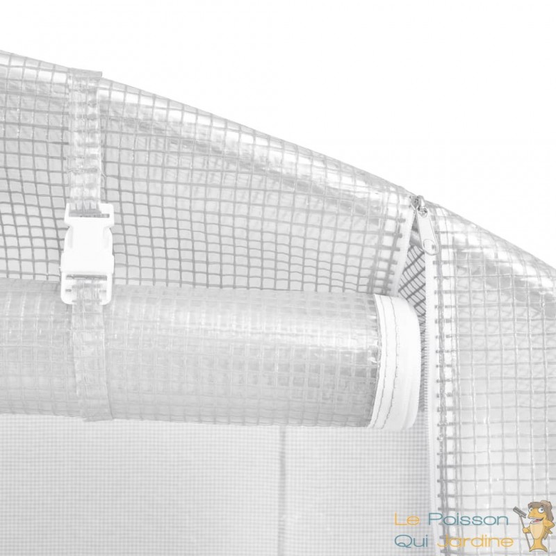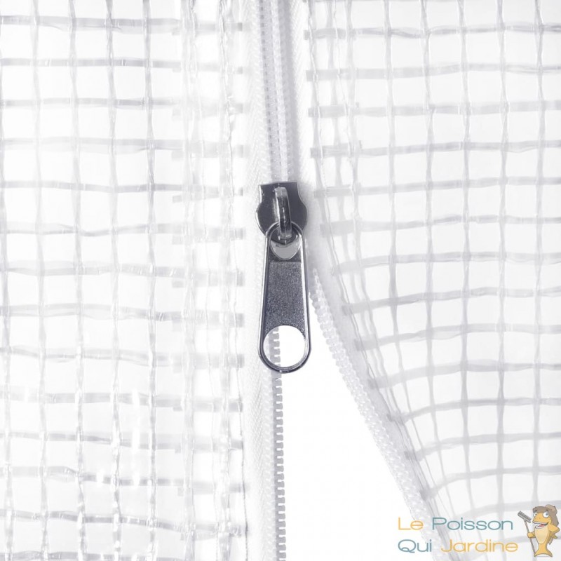 La bâche de la serre est spécialement conçue pour laisser passer la lumière du jour tout en maintenant un environnement intérieur optimal en termes d'humidité et de chaleur. De plus, lors des journées particulièrement chaudes, vous avez la possibilité d'ouvrir la porte à l'aide d'une fermeture éclair et de l'enrouler, favorisant ainsi une circulation d'air adéquate.