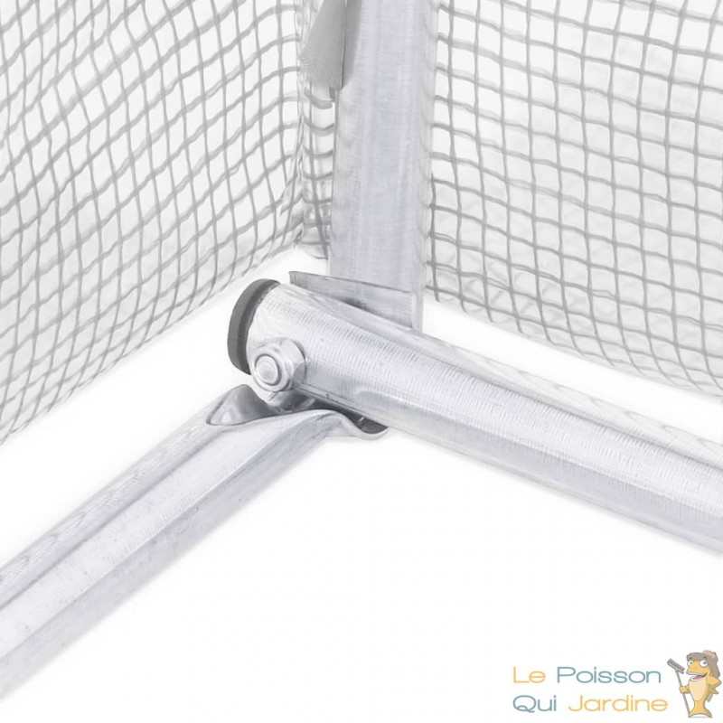 Il est important de noter que la bâche de la serre est légèrement plus longue que le cadre, donc il est recommandé de stabiliser le bord avec de la terre ou des pierres pour assurer une stabilité globale optimale. De plus, des cordes et des piquets sont inclus dans la livraison pour garantir une fixation sécurisée de la serre.