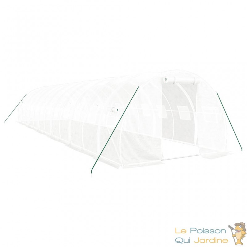 Il est important de noter que la bâche de la serre est légèrement plus longue que le cadre, donc il est recommandé de stabiliser le bord avec de la terre ou des pierres pour assurer une stabilité globale optimale. De plus, des cordes et des piquets sont inclus dans la livraison pour garantir une fixation sécurisée de la serre.