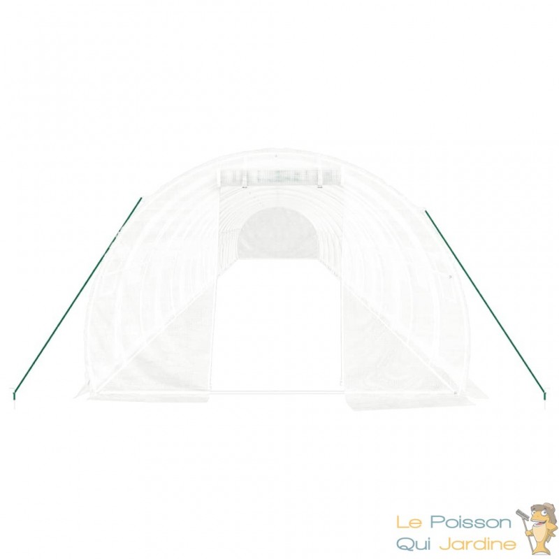 Il est important de noter que la bâche de la serre est légèrement plus longue que le cadre, donc il est recommandé de stabiliser le bord avec de la terre ou des pierres pour assurer une stabilité globale optimale. De plus, des cordes et des piquets sont inclus dans la livraison pour garantir une fixation sécurisée de la serre.
