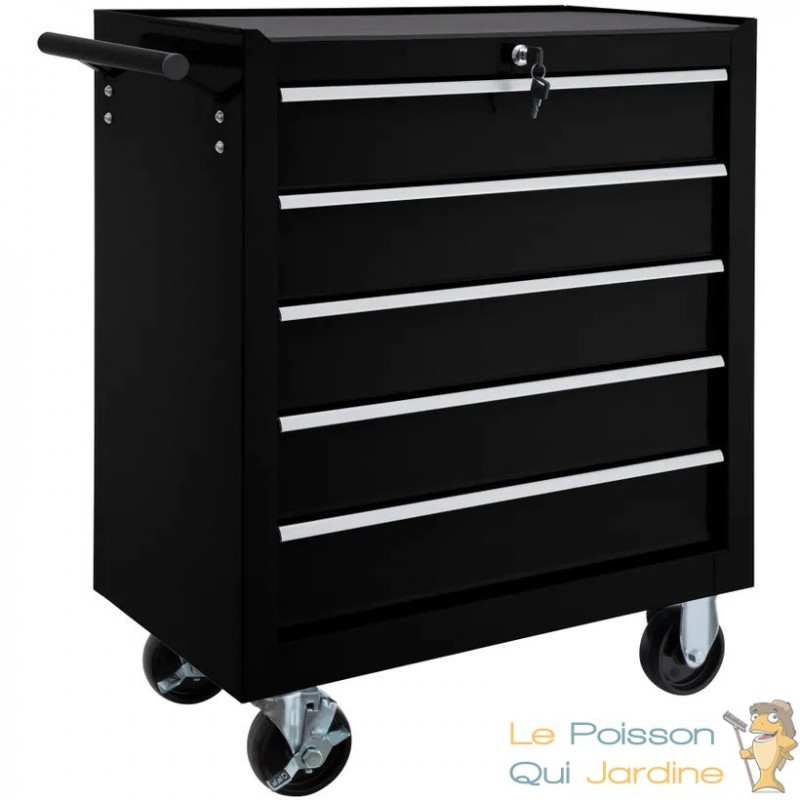Chaque détail de cette servante d'atelier a été soigneusement pensé pour offrir une expérience d'utilisation pratique et efficace. Les 5 tiroirs spacieux offrent suffisamment d'espace pour ranger une variété d'outils, des plus petits aux plus grands. Grâce à leur verrouillage sécurisé, vous pouvez être sûr que vos outils seront en sécurité, que vous soyez en déplacement ou que vous les laissiez sans surveillance.