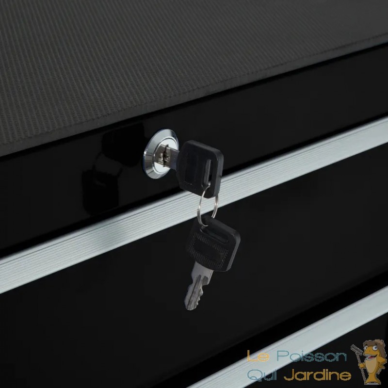 La serrure intégrée offre une sécurité supplémentaire en empêchant l'ouverture involontaire des tiroirs pendant le transport. Vous pouvez ainsi déplacer la servante d'atelier en toute tranquillité d'esprit, sachant que vos outils resteront en place et ne risquent pas de se disperser.