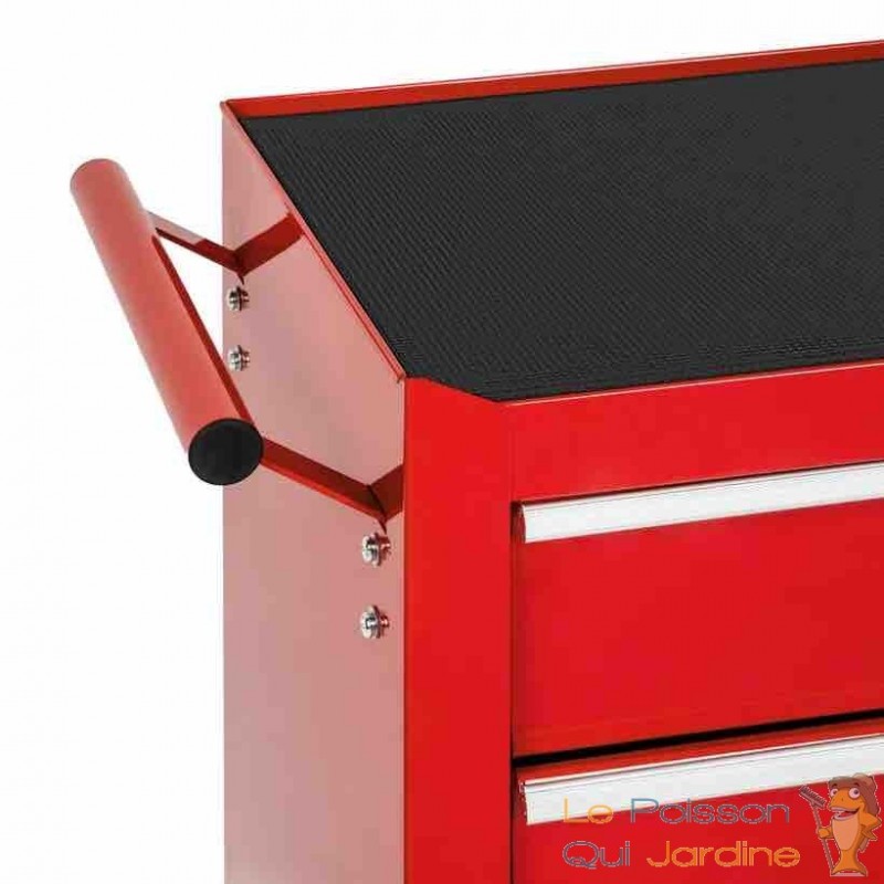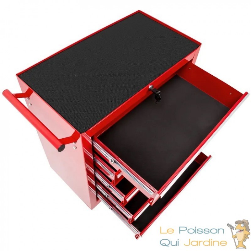 Un autre avantage essentiel est la présence de tapis antidérapants à l'intérieur des tiroirs et sur le plateau du chariot. Ces tapis garantissent que vos outils restent bien en place, même lors de déplacements ou de manœuvres rapides. Fini les outils qui glissent ou s'entrechoquent, grâce à ces tapis pratiques.