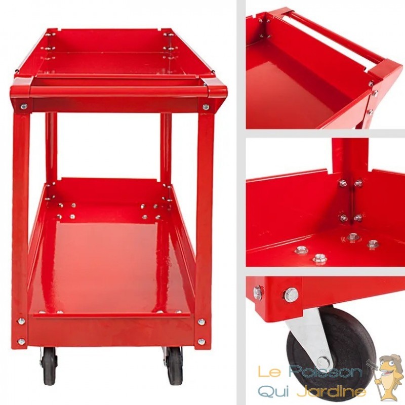 Imaginez un chariot robuste et bien construit, doté de trois grands étages de rangement spacieux. Chaque plateau offre un espace généreux pour accueillir une multitude d'outils, qu'ils soient petits ou volumineux, allant des clés et des tournevis aux perceuses électriques et aux machines-outils. Fini le désordre et les outils éparpillés partout dans l'atelier ! Grâce à cette servante d'atelier, tout trouvera sa place et sera à portée de main pour que vous puissiez vous concentrer pleinement sur vos projets sans perdre de temps inutilement.