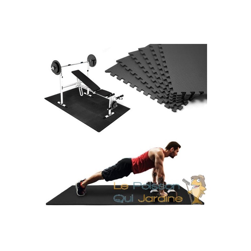 Sous les équipements de musculation : Placez les dalles sous des équipements tels que des haltères, des bancs, des tapis roulants, etc., pour protéger le sol des rayures et des dommages.
