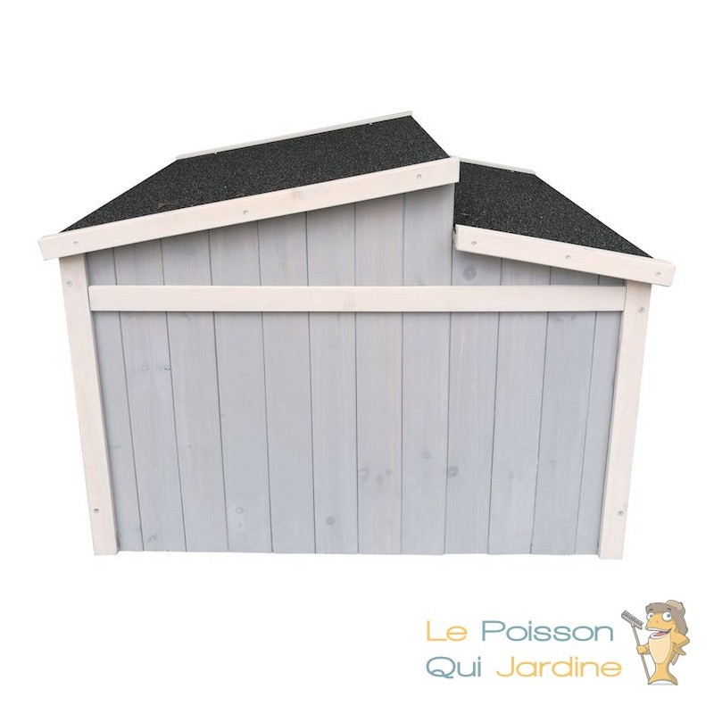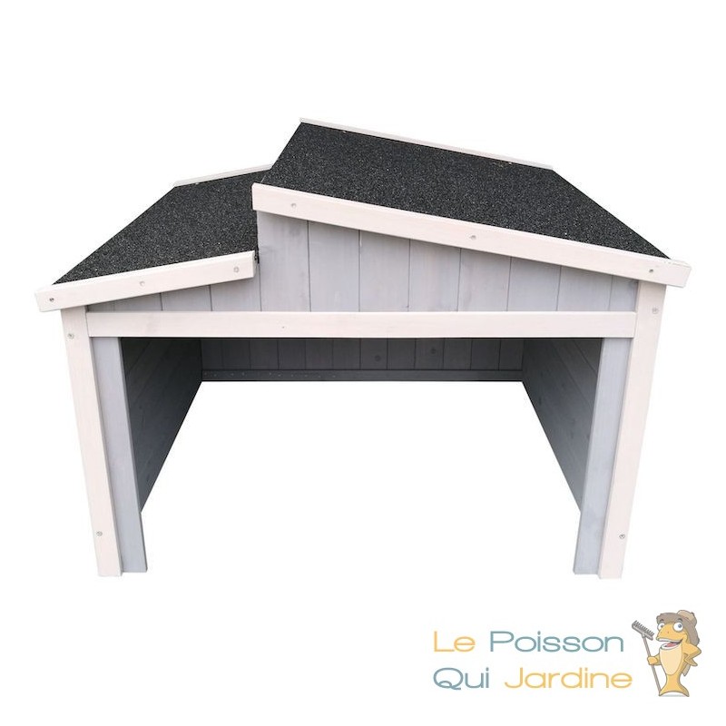 Le toit plat à double niveau est recouvert de carton bitumé, renforçant la résistance aux intempéries et assurant une évacuation efficace de l’eau. Facile à monter et à déplacer, ce garage ne nécessite aucune fixation permanente, offrant flexibilité et praticité.