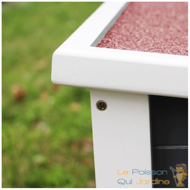 L'abri est doté d'un toit plat recouvert d'un film étanche à l'eau, assurant une protection complète contre l'humidité potentielle susceptible de s'infiltrer par le haut de la structure. Cette caractéristique garantit que votre robot-tondeuse et sa station de chargement restent à l'abri des intempéries, contribuant ainsi à prolonger leur durée de vie et à assurer leur bon fonctionnement.