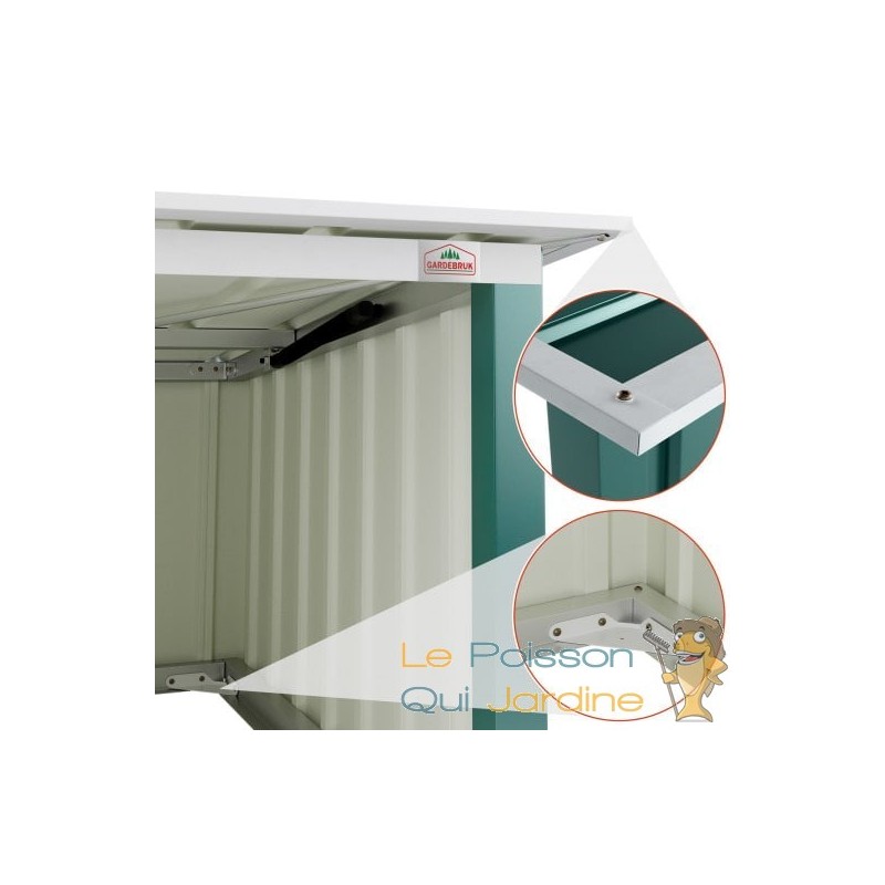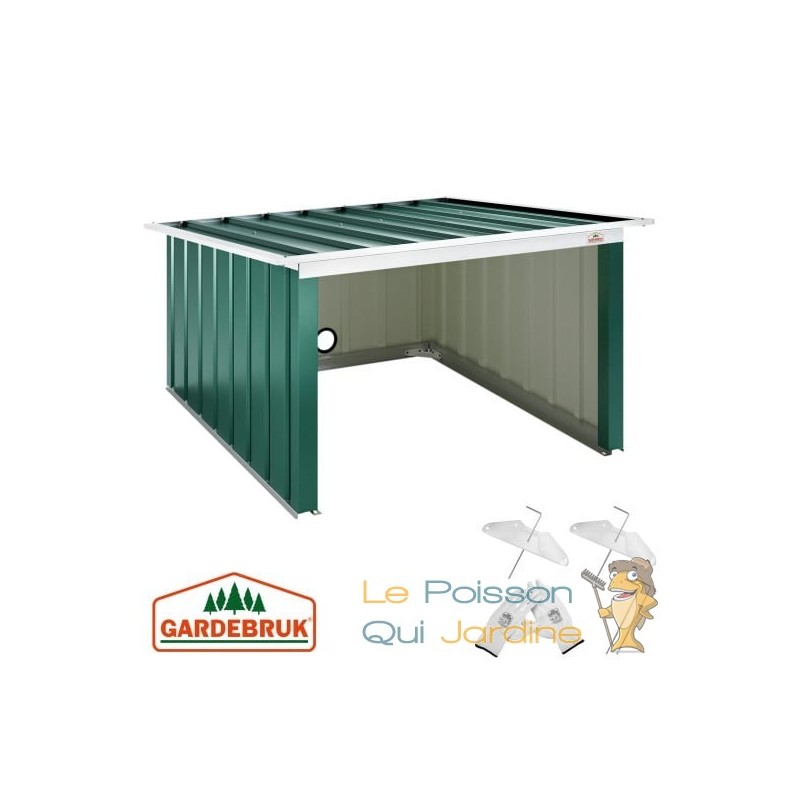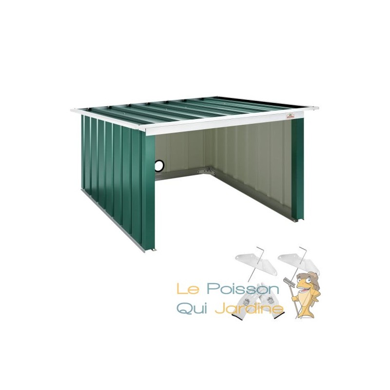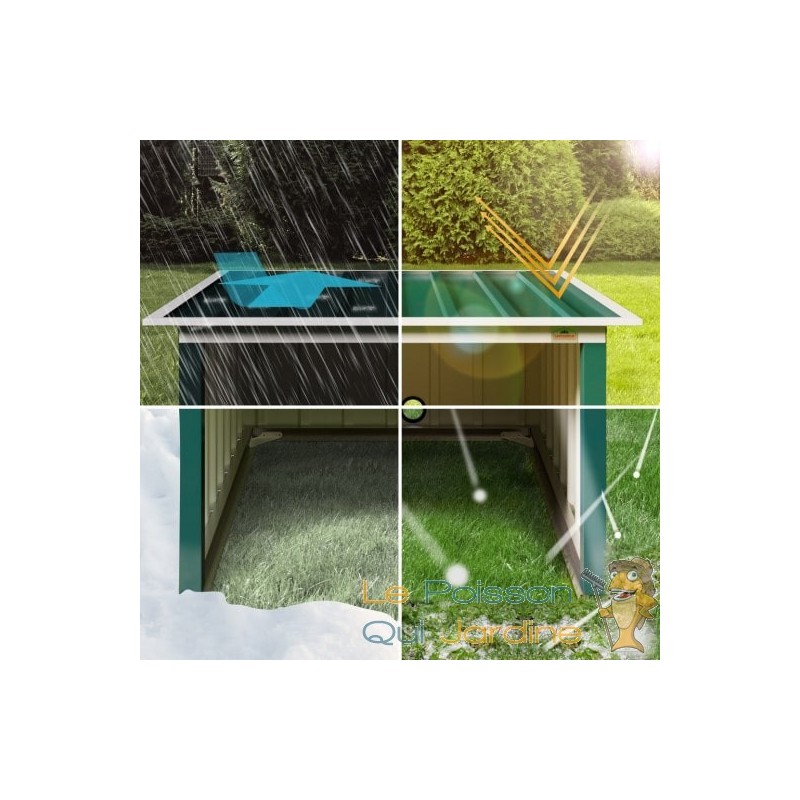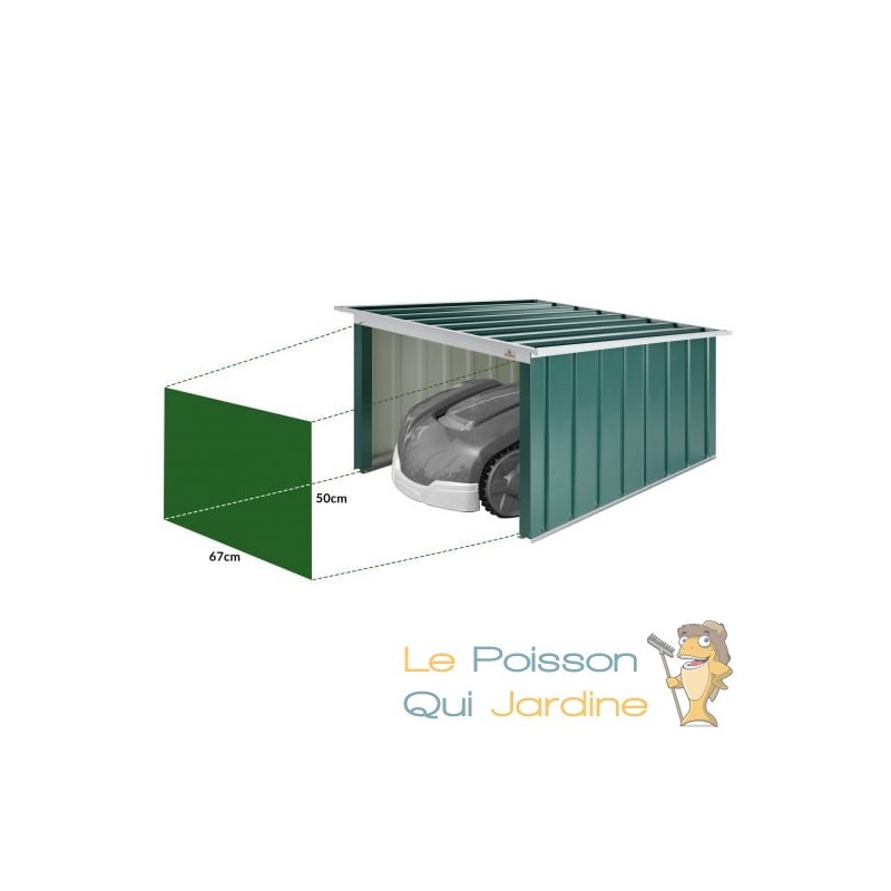 Protégez votre robot tondeuse avec l'élégant garage Fabriqué en tôle d'acier galvanisée à chaud, ce carport durable offre une sécurité optimale à votre tondeuse à gazon mobile. La forme trapézoïdale des plaques métalliques assure une stabilité murale maximale, renforcée par des plinthes supplémentaires, des supports métalliques et des piquets de terre robustes. La galvanisation de haute qualité le rend résistant au froid et à la corrosion.