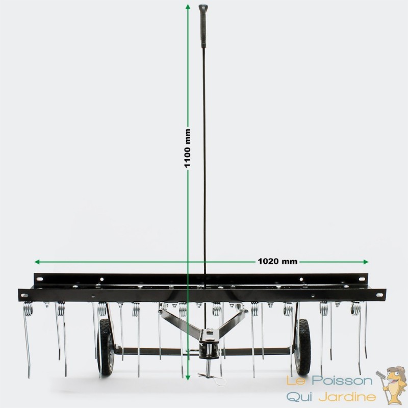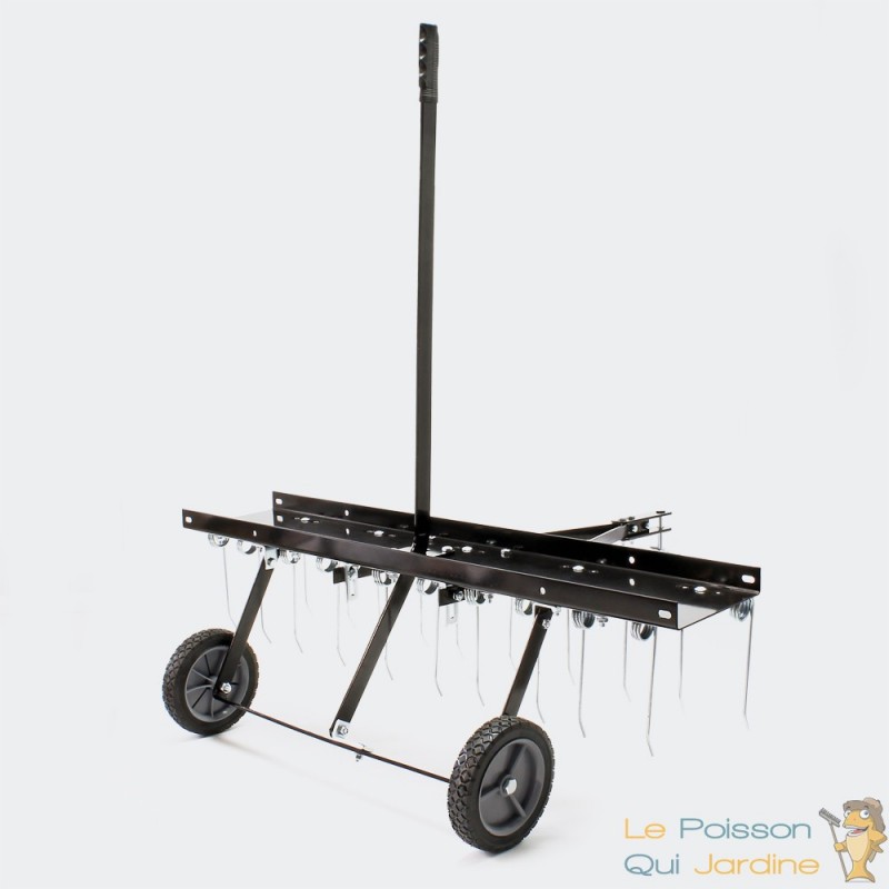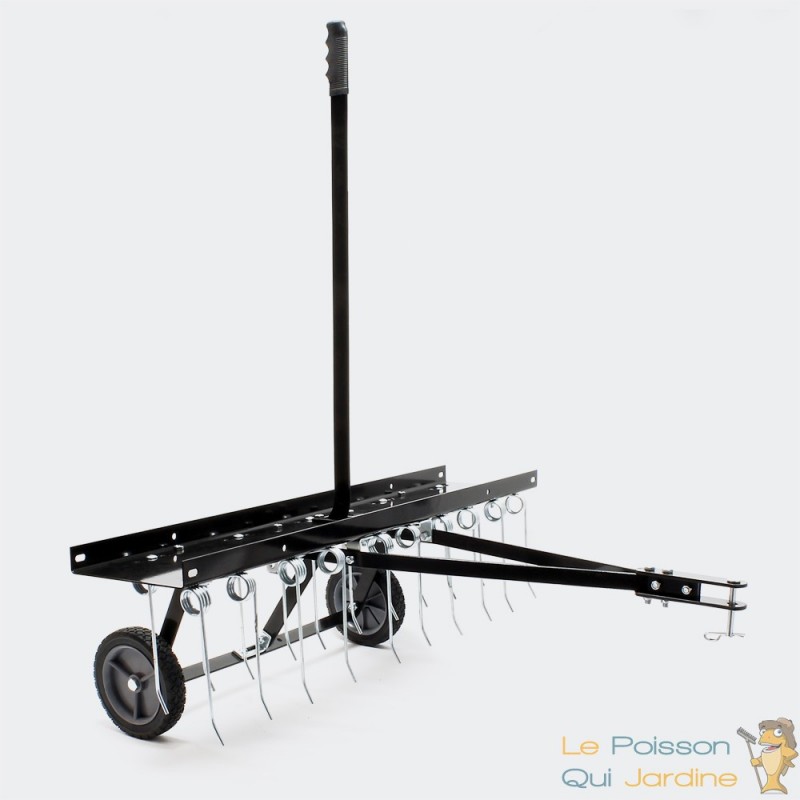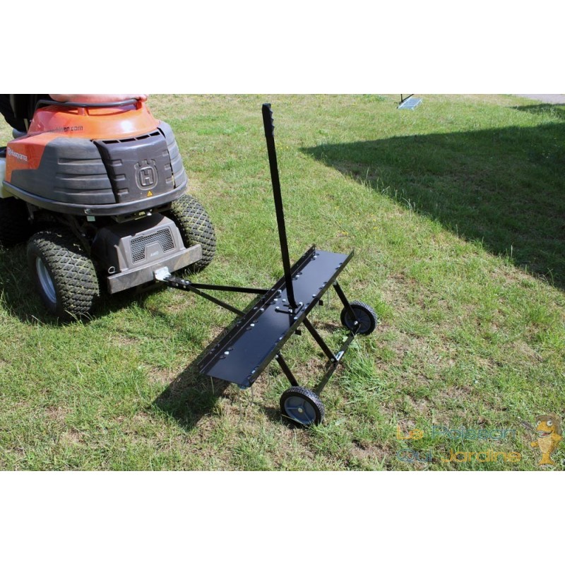 Nous vous proposons un scarificateur et aérateur de pelouse et de gazon. À atteler à une tondeuse auto portée ou encore à un quad qui a été adapté.