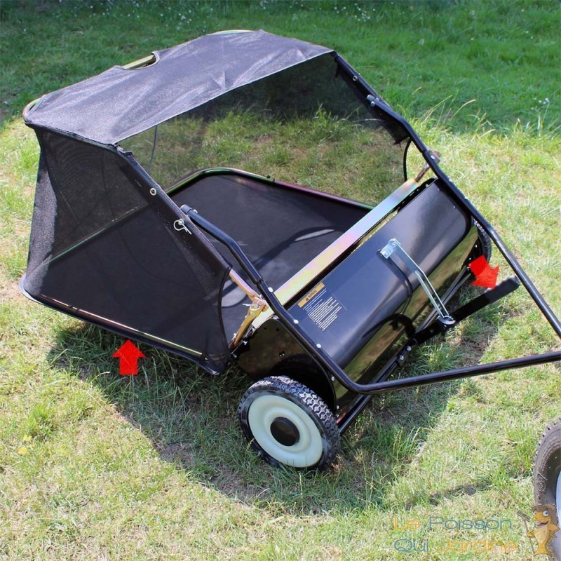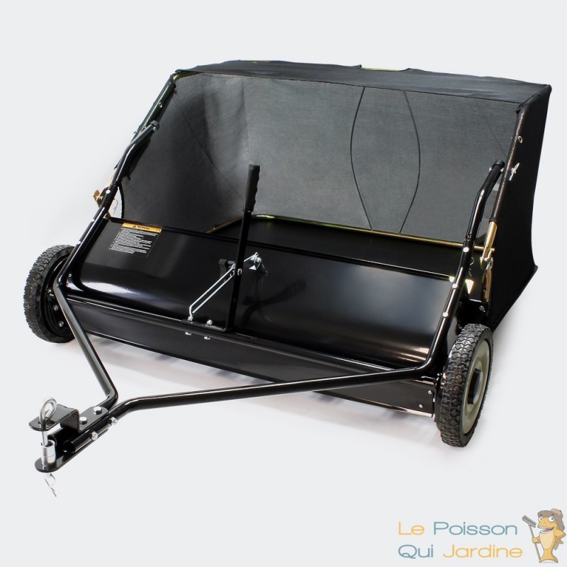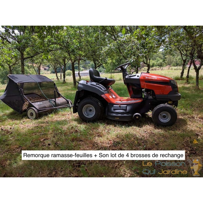 Cette remorque ramasse feuilles doit juste être attelée à la tondeuse auto-portée et le tour est joué. Sachez que vous pouvez aussi atteler la balayeuse à un quad.