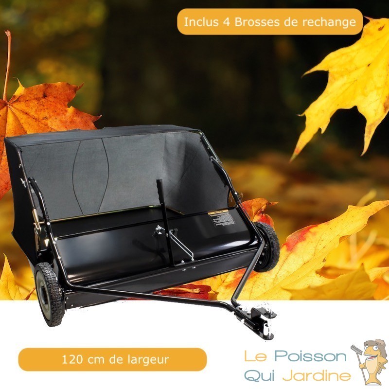 ✔ Largeur de travail : environ 120 cm pour un ramassage optimal