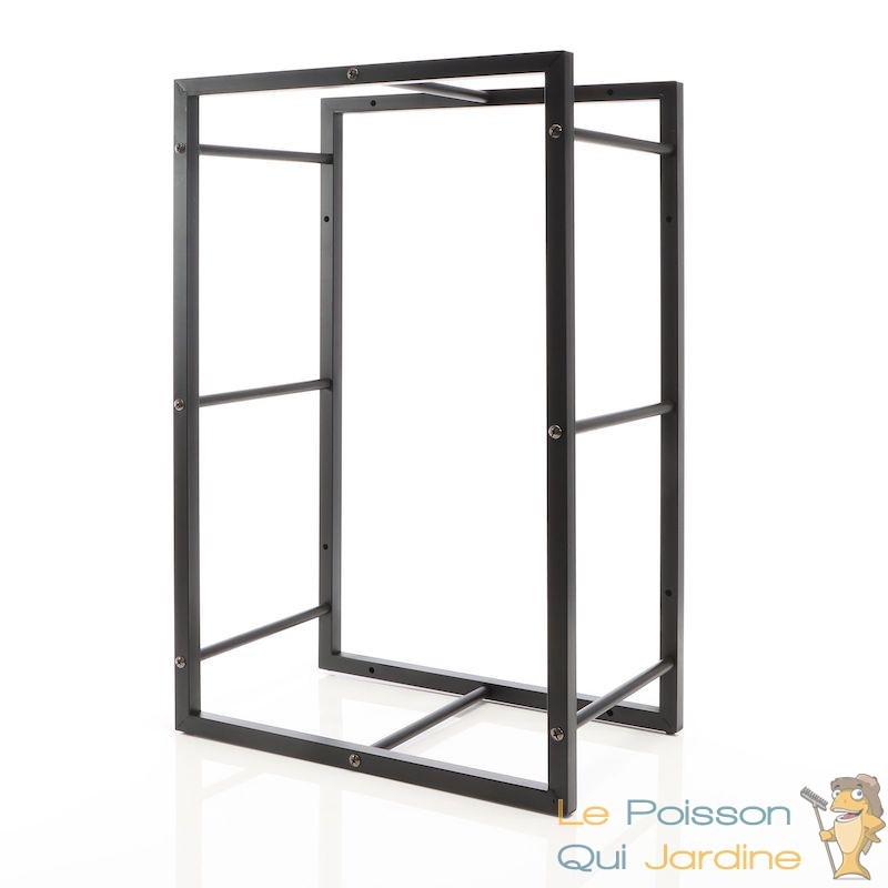 Structure : Une étagère à bois de chauffage est généralement constituée de matériaux robustes tels que le métal, le bois, ou le métal avec des étagères en bois. Elle est conçue pour supporter le poids des bûches de bois tout en étant stable.