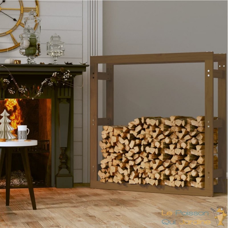 Ce range bûches en bois massif est la solution idéale pour organiser votre bois de chauffage à l’intérieur de la maison, notamment dans le salon, près de votre cheminée ou poêle. À la fois fonctionnel et décoratif, il offre un espace de stockage intérieur propre et efficace pour vos bûches.