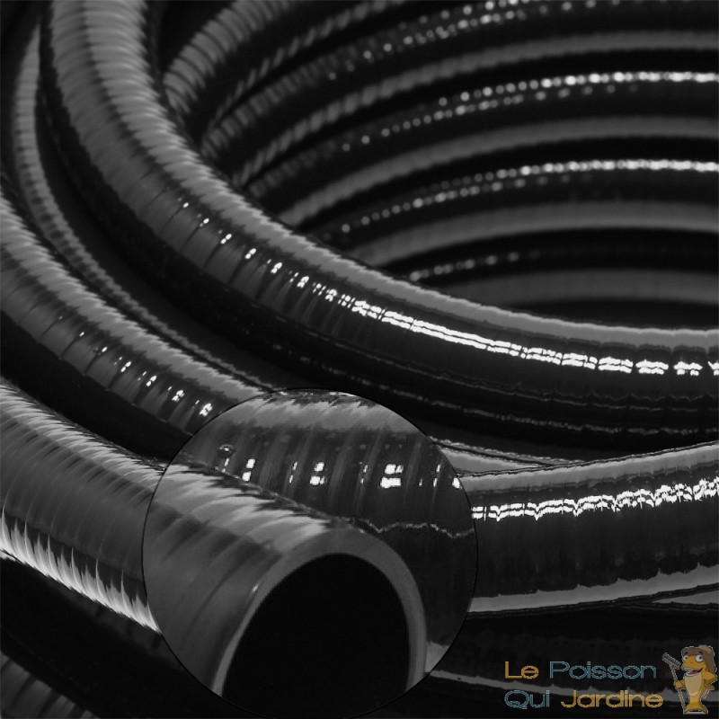 Ce tuyau noir possède une grande résistance aux pressions des pompes de bassin de jardin et d'autres pompes à eau comme les pompes pour puits ou pompes vide caves. Certains de nos clients l'utilisent aussi pour l'installation de leur piscine ou pour leurs installations d'irrigation et d'arrosage du jardin ou du potager. Cette résistance aux pressions est due au fait que le tuyau possède un renforcement sous forme de spirale en PVC.