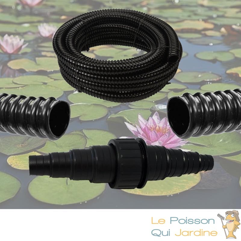 Autre cas de figure : Si, lors de l'installation de votre bassin de jardin, la longueur du tuyau commandé n'est pas suffisante. Vous placerez simplement le manchon et une nouvelle longueur de tuyau. Vous ne devrez pas racheter une nouvelle bobine de tuyau de bassins de jardin.
