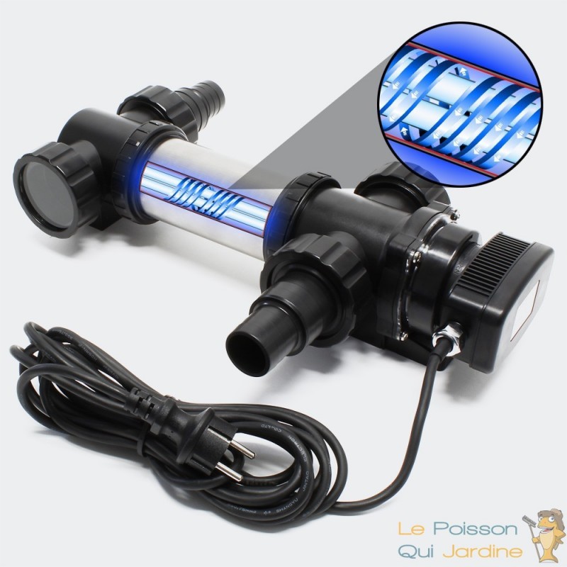 Enfin, sachez que contrairement à la pompe de bassin, vous pouvez surévaluer la puissance de votre stérilisateur UV sans aucun risque pour votre milieu aquatique, vos poissons et l'équilibre biologique du bassin. Le seul effet notable sera que l'eau deviendra claire et transparente plus rapidement et qu'elle le restera durant toute la belle saison.
