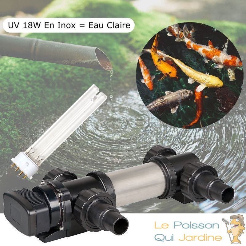 Nous vous proposons un UV ultra violet stérilisateur germicide d'une puissance de 18W accompagné de son ampoule supplémentaire, pour aquariums d'eau douce, d'eau de mer ou pour bassins de jardin et étangs extérieurs.