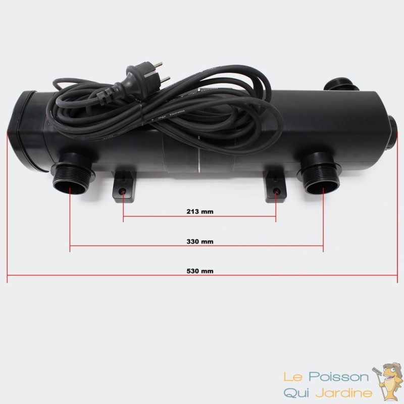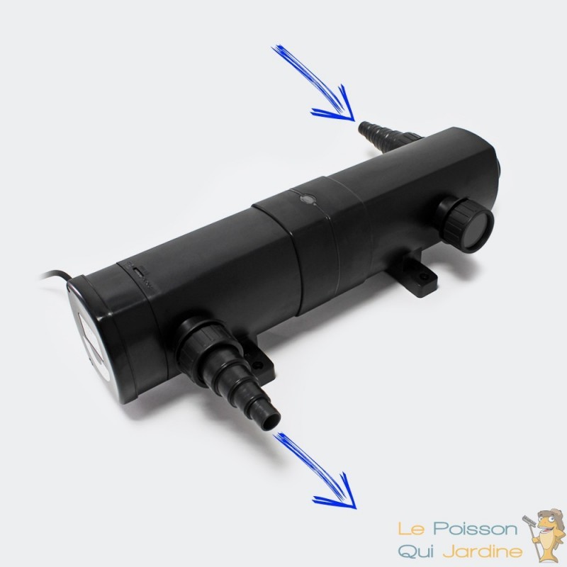 Notre UV stérilisateur est fourni avec une ampoule et des embouts de différentes tailles afin de connecter des tuyaux de 20 - 25 - 32 ou 40 mm.