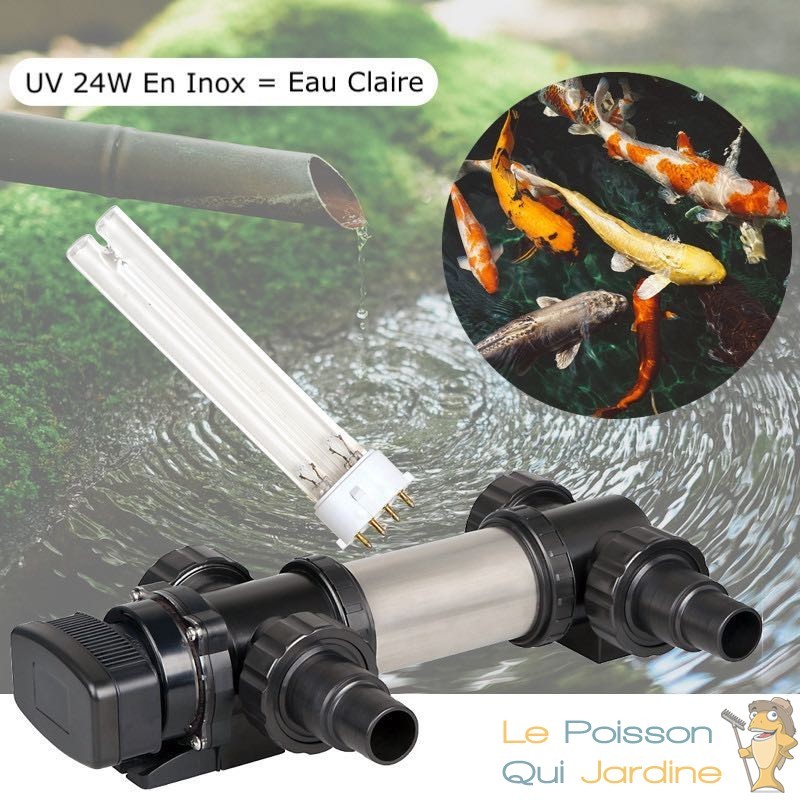Avec une nouvelle ampoule UVC, l'eau de votre bassin de jardin sera claire et limpide car les rayonnements de cette ampoule brûlent les micro algues en suspension dans l'eau du bassin de jardin. Pour informations : ce sont ces micro algues qui rendent l'eau verte et qui vous empêchent de voir vos poissons de bassin.