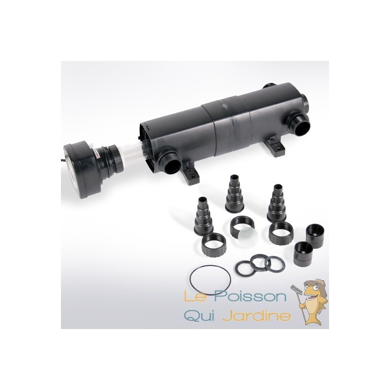 Notre UV stérilisateur est fourni avec une ampoule et des embouts de différentes tailles afin de connecter des tuyaux de 20 - 25 - 32 ou 40 mm.