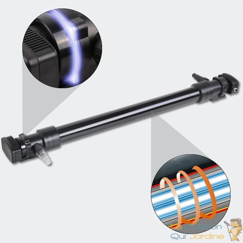 Ce filtre UV 110W est l'une de nos meilleures ventes car il a été bien pensé et bien conçu afin de rendre l'eau claire des bassins de jardin et étangs. Il est fabriqué avec un plastique dur haute résistance qui le rend très robuste. Bien entendu, il supporte bien les intempéries comme la neige, la pluie, le vent.