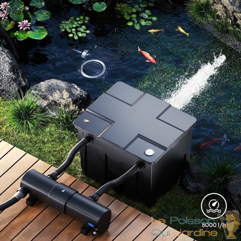 | Volume du bassin | Jusqu'à 50 000 L (agrément) / 35 000 L (Koï) |
