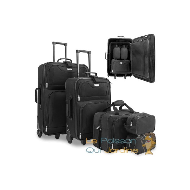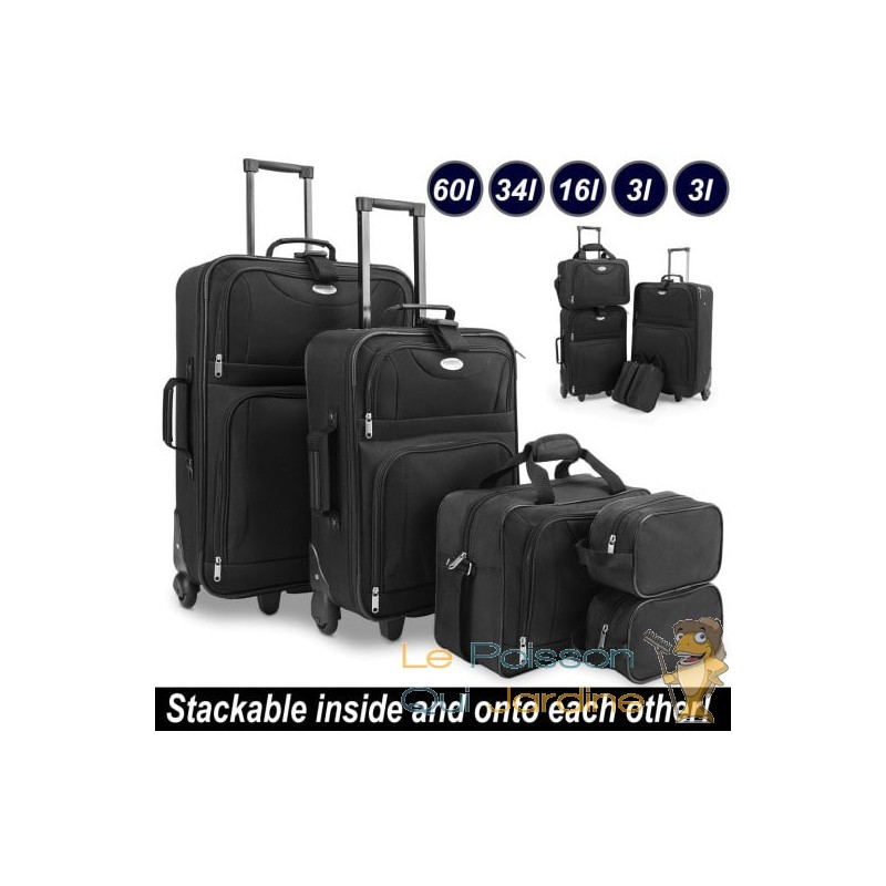 L'ensemble de valises affiche une élégance incontestable et est confectionné en polyester haut de gamme. Les deux trolleys et les sacs peuvent être astucieusement superposés.