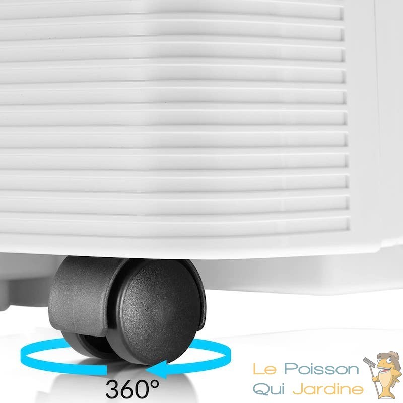La mobilité est un atout majeur de ce climatiseur. Équipé de 4 roulettes à 360° et de 2 poignées, il peut être facilement déplacé d'une pièce à l'autre selon vos besoins. Il est livré avec un kit de montage complet comprenant un tuyau d'évacuation extra long de 160 cm, un adaptateur pour fenêtre et des lames pour volet roulant, offrant ainsi une installation polyvalente dans la pièce de votre choix. Ce climatiseur utilise le fluide frigorigène R290, qui est écologique et efficace. Grâce à ses propriétés thermodynamiques, ce réfrigérant offre une performance énergétique élevée. Il est également durable et respectueux de l'environnement, contribuant ainsi à réduire l'impact sur la couche d'ozone et l'effet de serre.