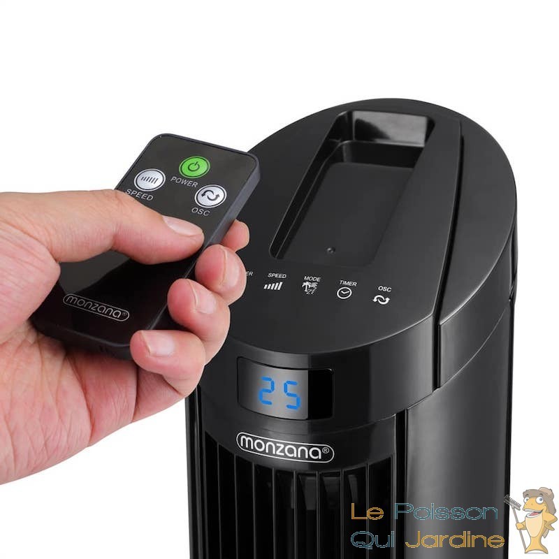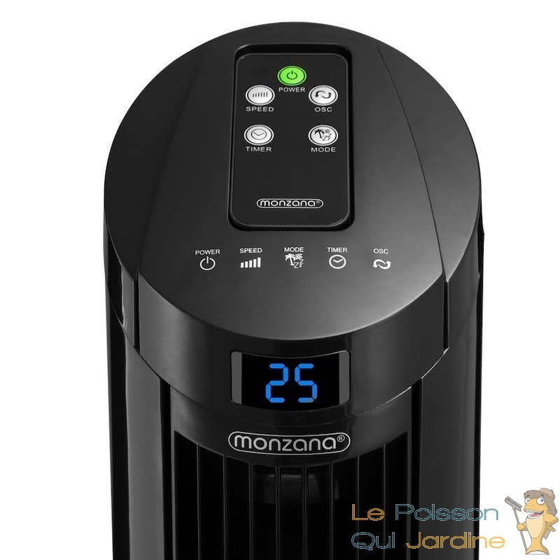 En résumé, le ventilateur colonne oscillant offre une solution de ventilation puissante et polyvalente pour rafraîchir votre espace de vie. Avec sa fonction turbo, ses différentes vitesses de ventilation, ses fonctions variées, son minuteur pratique et son design élégant, il vous permet de créer un environnement frais et confortable, adapté à vos besoins personnels. Profitez d'un vent de fraîcheur agréable grâce à ce ventilateur colonne oscillant.
