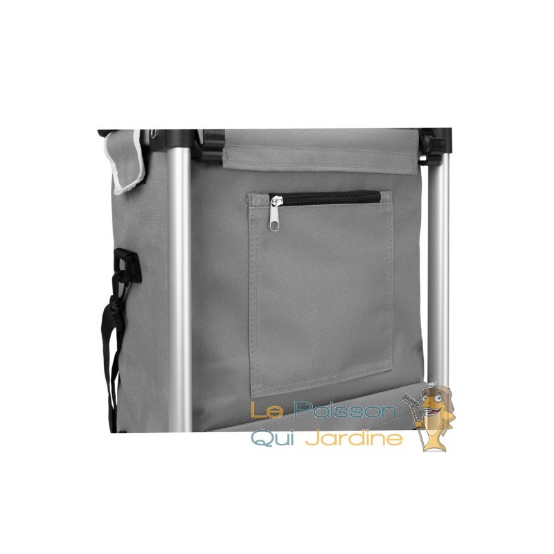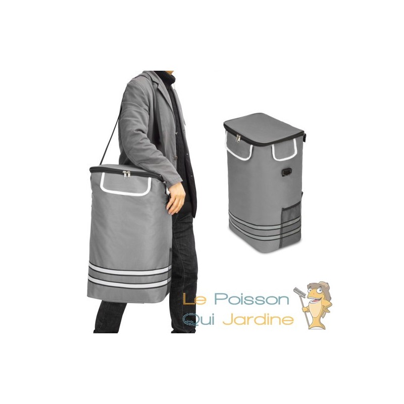 Ce cabas est également équipé d'un système de fermeture auto-agrippante ingénieux pour fixer rapidement le sac sur le support. De plus, il comporte un compartiment isotherme intégré, idéal pour le transport d'aliments surgelés.