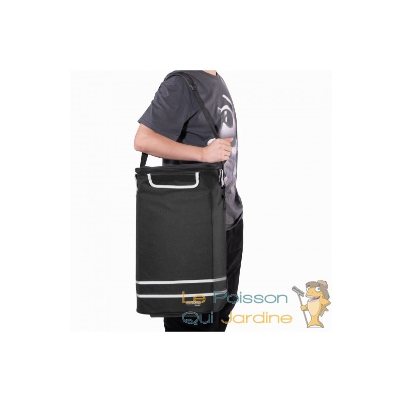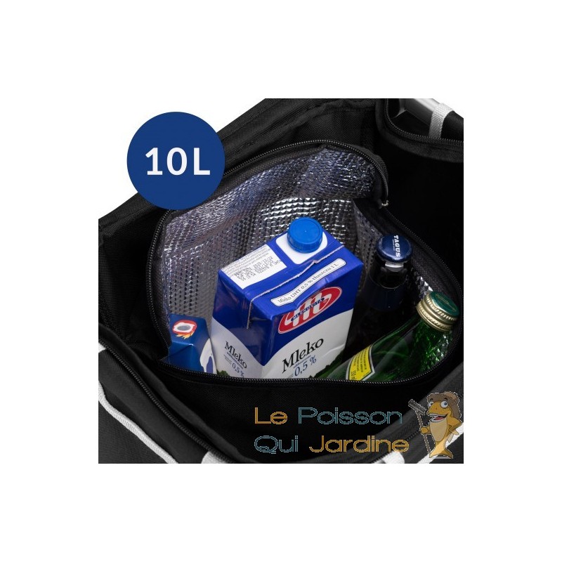Il est également doté d'un système de fermeture auto-agrippante ingénieux pour fixer rapidement le sac sur le support, ainsi que d'un compartiment isotherme intégré, parfait pour le transport d'aliments surgelés.