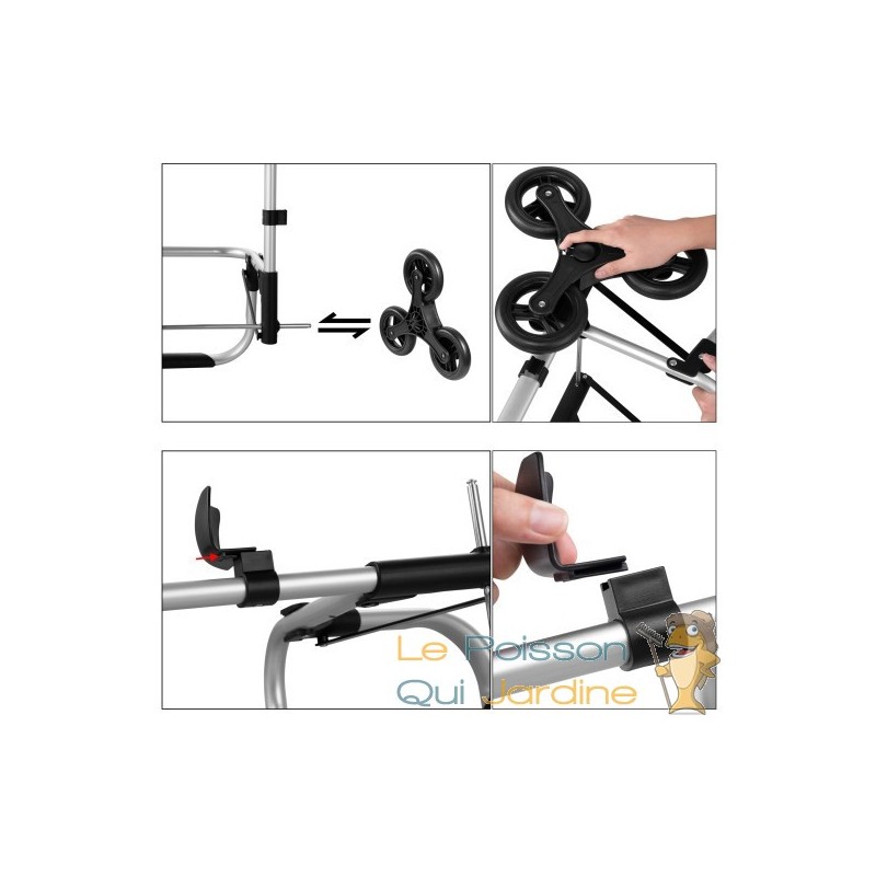 Grâce à son cadre en aluminium léger et à ses roues en caoutchouc équipées de roulements à billes, ce chariot se manœuvre aisément, ce qui facilite vos déplacements.